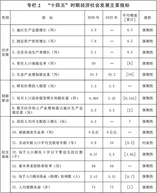 “十四五”發展目標: