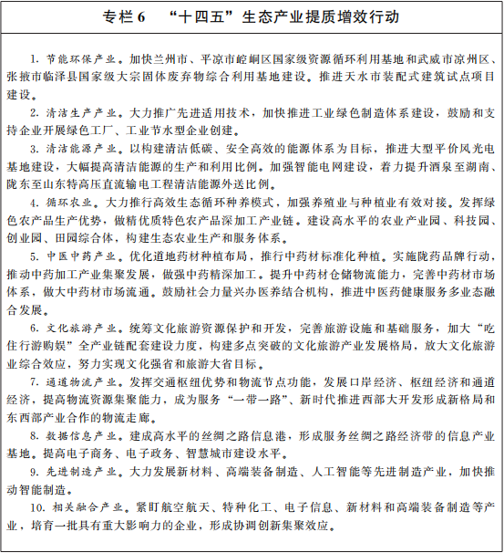 更深層次參(can)與共(gong)建(jian)(jian)“一(yi)(yi)帶一(yi)(yi)路(lu)”。發(fa)揮區位優(you)勢(shi),從文(wen)化(hua)(hua)、樞紐、技術、信(xin)息(xi)、生(sheng)態五個方(fang)面(mian)深度參(can)與共(gong)建(jian)(jian)“一(yi)(yi)帶一(yi)(yi)路(lu)”,推動對外開放取得更大實質(zhi)性進(jin)(jin)(jin)展。實施(shi)一(yi)(yi)批文(wen)化(hua)(hua)重大工程(cheng),加(jia)(jia)強(qiang)文(wen)化(hua)(hua)交(jiao)流(liu)合作(zuo),充分發(fa)掘(jue)歷史文(wen)化(hua)(hua)優(you)勢(shi),推動甘肅文(wen)化(hua)(hua)走出去和優(you)秀多元文(wen)化(hua)(hua)引進(jin)(jin)(jin)來(lai)。集聚各類要素,統籌(chou)推進(jin)(jin)(jin)“南向、西進(jin)(jin)(jin)、東(dong)出、北擴”四向開放,做大做強(qiang)樞紐型(xing)經濟。以蘭州白銀國(guo)(guo)(guo)家自主(zhu)創新(xin)示(shi)范區和絲綢(chou)(chou)之路(lu)國(guo)(guo)(guo)際知識(shi)產(chan)權(quan)港(gang)為重點(dian),加(jia)(jia)快(kuai)新(xin)材(cai)料(liao)、新(xin)能源、生(sheng)物醫藥、現代農業(ye)(ye)、先進(jin)(jin)(jin)制造業(ye)(ye)等(deng)重點(dian)領域(yu)先進(jin)(jin)(jin)技術的產(chan)業(ye)(ye)化(hua)(hua)進(jin)(jin)(jin)程(cheng),打造知識(shi)產(chan)權(quan)保護、交(jiao)易高(gao)地(di)。加(jia)(jia)快(kuai)建(jian)(jian)設絲綢(chou)(chou)之路(lu)信(xin)息(xi)港(gang),共(gong)建(jian)(jian)通暢、安全、高(gao)效的網絡(luo)大通道和綜合信(xin)息(xi)服(fu)務體系,形成面(mian)向中西亞(ya)、南亞(ya)等(deng)地(di)區的信(xin)息(xi)走廊(lang)。探索開展國(guo)(guo)(guo)際環(huan)保合作(zuo),共(gong)建(jian)(jian)綠色產(chan)業(ye)(ye)合作(zuo)示(shi)范基(ji)地(di)。
