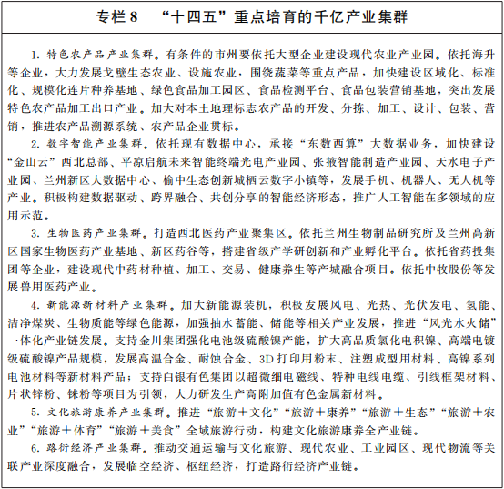 現將《甘肅省國民經濟和社(she)會發(fa)展第十(shi)四個五(wu)(wu)年(nian)規劃和二〇三五(wu)(wu)年(nian)遠(yuan)景目標綱要》印發(fa)給你們(men),請認真組(zu)織(zhi)實施。