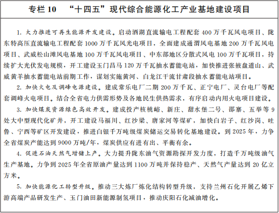 近日,甘肅省印發了《甘肅省國民經濟和社會發展第十四個五年規劃和二〇三五年遠景目標綱要》的通知,下文摘錄了新能源及光熱發電的相關計劃或建議。