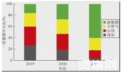 預計2030年,全(quan)球一(yi)次能源量將(jiang)達到峰(feng)值156′108 t油當量,年均增長(chang)1.2%,其中(zhong)煤炭占19%、石油占28%、天然(ran)氣占26%、新能源占27%(見圖6)[15]。