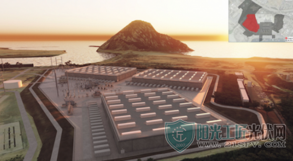 Vistra Energy公司計劃在加利(li)福尼亞州莫(mo)羅貝(Morro Bay)部署的大型電池儲(chu)能項目渲染圖