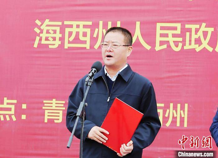 圖為(wei)青海省(sheng)副(fu)省(sheng)長(chang)劉(liu)濤宣布項目正式啟動。李龍攝