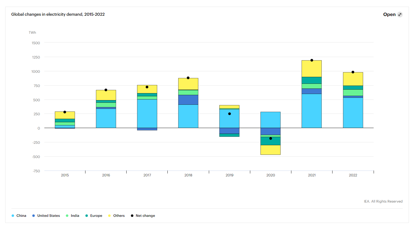根據國際能源署IEA最新發布的電力報告,全球電力需求將在2021年和2022年強勁反彈。在2020年下降約1%之后,全球電力需求預計將在2021年和2022年分別增長近5%和4%。其中大部分增長將發生在亞太地區。2022年全球增長的一半以上將發生在中國,這個世界上最大的電力消費國。印度是第三大消費國,將占全球增長的9%。