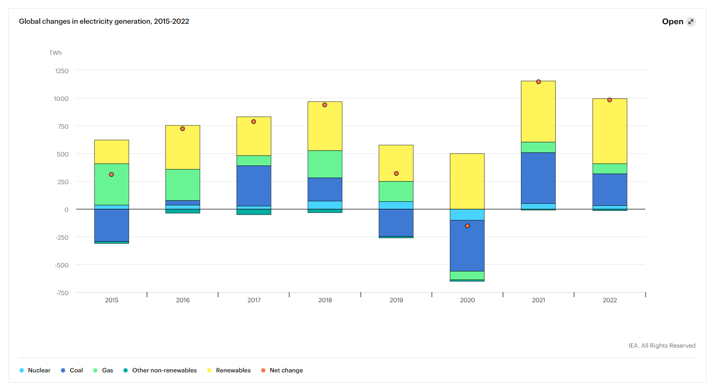 化石燃(ran)料發(fa)電將(jiang)在(zai)2021年(nian)(nian)和(he)2022年(nian)(nian)分別滿足45%和(he)40%的(de)(de)額外需求。燃(ran)煤發(fa)電量(liang)在(zai)2020年(nian)(nian)下降4.6%之后(hou),到2021年(nian)(nian)將(jiang)增(zeng)加近5%以(yi)超過(guo)大流行(xing)前的(de)(de)水(shui)平。到2022年(nian)(nian),它將(jiang)進一步增(zeng)長(chang)3%,并可(ke)能(neng)創(chuang)下歷(li)史新高(gao)。燃(ran)氣發(fa)電量(liang)在(zai)2020年(nian)(nian)下降2%后(hou),預計(ji)2021年(nian)(nian)將(jiang)增(zeng)長(chang)1%,2022年(nian)(nian)將(jiang)增(zeng)長(chang)接近2%。天然氣增(zeng)長(chang)落(luo)后(hou)于(yu)煤炭,因為它在(zai)快速(su)增(zeng)長(chang)的(de)(de)亞太地區(qu)發(fa)揮的(de)(de)作用較小,并且它還(huan)面臨來自美國和(he)歐(ou)洲(zhou)的(de)(de)可(ke)再生能(neng)源日益激烈的(de)(de)競(jing)爭。