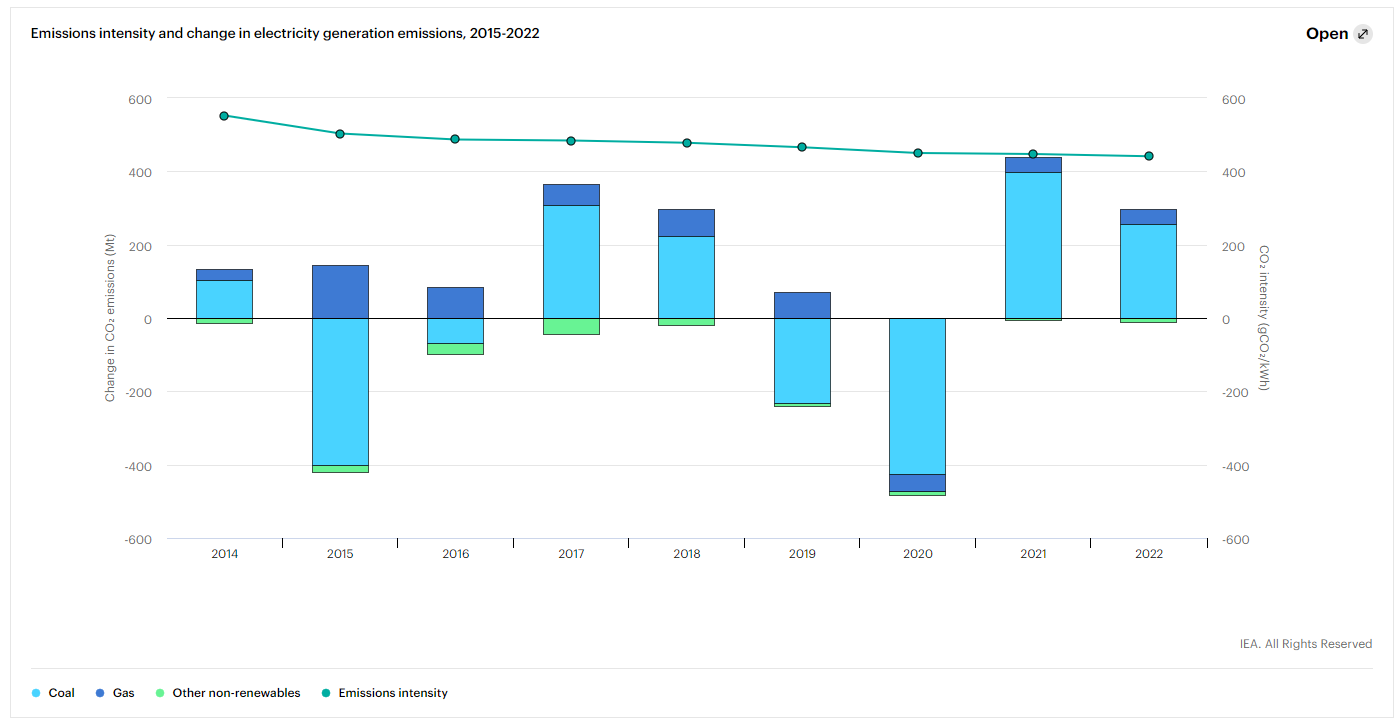 電(dian)力部門(men)的(de)二氧化碳(tan)(tan)排(pai)放(fang)(fang)(fang)量將(jiang)在(zai)2021年(nian)(nian)(nian)和(he)2022年(nian)(nian)(nian)增加。在(zai)2019年(nian)(nian)(nian)和(he)2020年(nian)(nian)(nian)分別(bie)下(xia)(xia)降(jiang)1%和(he)3.5%之后,電(dian)力部門(men)的(de)二氧化碳(tan)(tan)排(pai)放(fang)(fang)(fang)量預計(ji)將(jiang)在(zai)2021年(nian)(nian)(nian)和(he)2022年(nian)(nian)(nian)分別(bie)增加3.5%和(he)2.5%,這將(jiang)使他(ta)們達到歷(li)史最高(gao)水平(ping)。全球發電(dian)排(pai)放(fang)(fang)(fang)強度的(de)下(xia)(xia)降(jiang)將(jiang)從2020年(nian)(nian)(nian)的(de)3%以上放(fang)(fang)(fang)緩至2021年(nian)(nian)(nian)和(he)2022年(nian)(nian)(nian)的(de)1%左右。