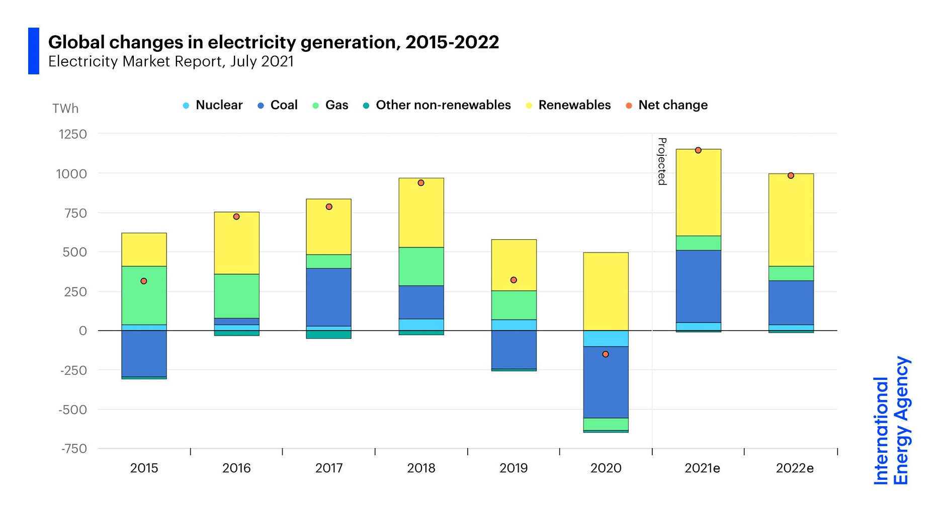 在(zai)全球(qiu)范圍內(nei),IEA上周發表的(de)(de)研究(jiu)報告預計,“燃(ran)煤發電(dian)量在(zai)2020年(nian)(nian)下降4.6%后,2021年(nian)(nian)將(jiang)增加近5%,2022年(nian)(nian)再增加3%。因(yin)此,燃(ran)煤發電(dian)量甚至將(jiang)在(zai)今年(nian)(nian)超過大流行前的(de)(de)水平(ping),并在(zai)2022年(nian)(nian)達到(dao)歷史最高(gao)水平(ping)。”