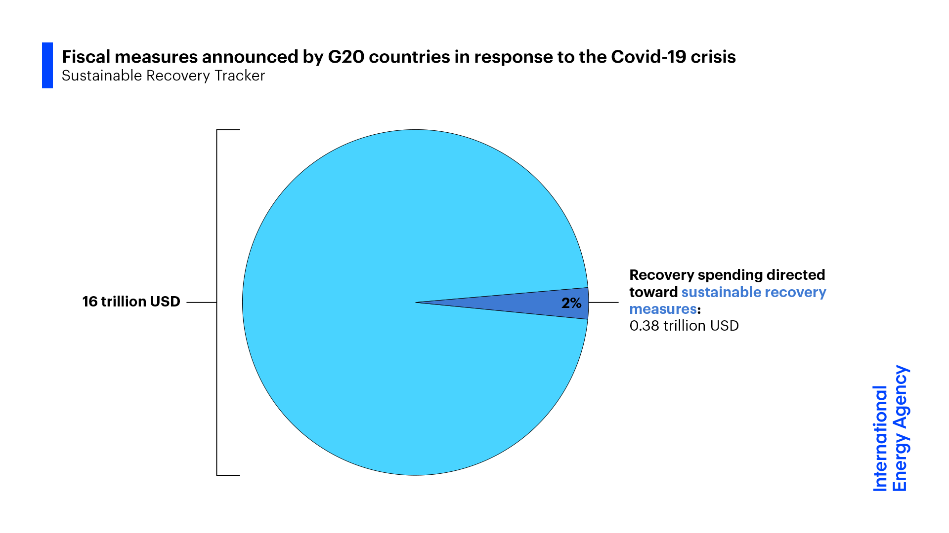 IEA在報告中(zhong)稱,各國政(zheng)府在恢復(fu)(fu)性支出(chu)中(zhong)只有(you)一小部分(fen)被分(fen)配(pei)給了清潔能源措施。具體數據顯示,截至今年第二季度(du),世(shi)界(jie)各國政(zheng)府為“與能源有(you)關(guan)的可(ke)持(chi)續(xu)恢復(fu)(fu)措施”撥出(chu)了大(da)約(yue)3800億美(mei)元,僅占復(fu)(fu)蘇總(zong)支出(chu)的2%。