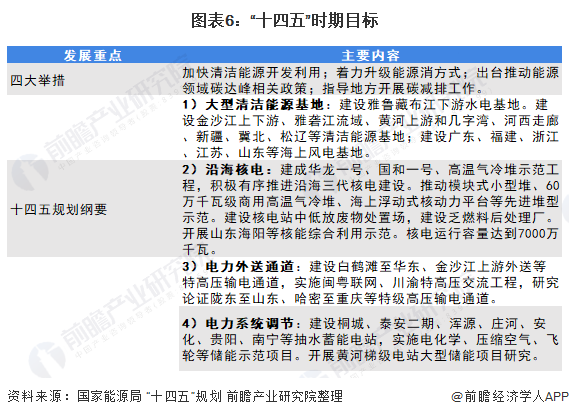 2021年兩會期(qi)間,國家能(neng)源局提(ti)出將(jiang)制定更積極新(xin)能(neng)源發展(zhan)目(mu)標,加快推(tui)動碳達峰、碳中(zhong)和(he),重點采取(qu)四(si)(si)方面舉措;同時,根據《“十四(si)(si)五(wu)”規(gui)劃(hua)綱要》,“十四(si)(si)五(wu)”期(qi)間,我國新(xin)能(neng)源產業將(jiang)實施(shi)多(duo)項建設工程(cheng),涉及水電、風電、核電、電網(wang)建設等。