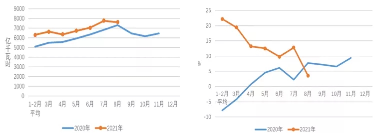 圖1 2020、2021年分月全社(she)會用電量及其(qi)增(zeng)速