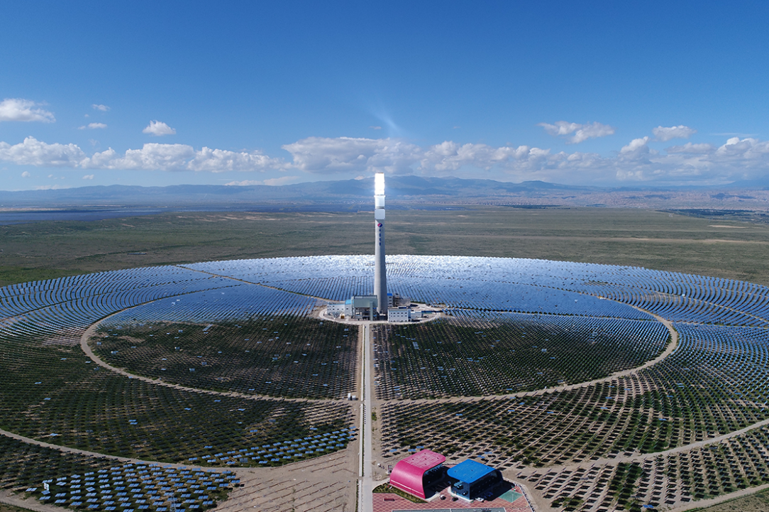 茫茫戈壁,晴空萬(wan)里。3萬(wan)多(duo)面“超級鏡(jing)子”像葵(kui)花追日將萬(wan)束陽(yang)光(guang)匯聚到中央的(de)集熱(re)塔上,氣象壯觀。這是由西北院總承包建(jian)設的(de)國家首批光(guang)熱(re)發(fa)電示(shi)范項(xiang)(xiang)目——青(qing)海共(gong)和50兆瓦光(guang)熱(re)發(fa)電項(xiang)(xiang)目。2021年4月(yue),該項(xiang)(xiang)目通過示(shi)范性(xing)驗收,標志著(zhu)西北院已(yi)掌(zhang)握光(guang)熱(re)發(fa)電的(de)關鍵(jian)核(he)心技術。