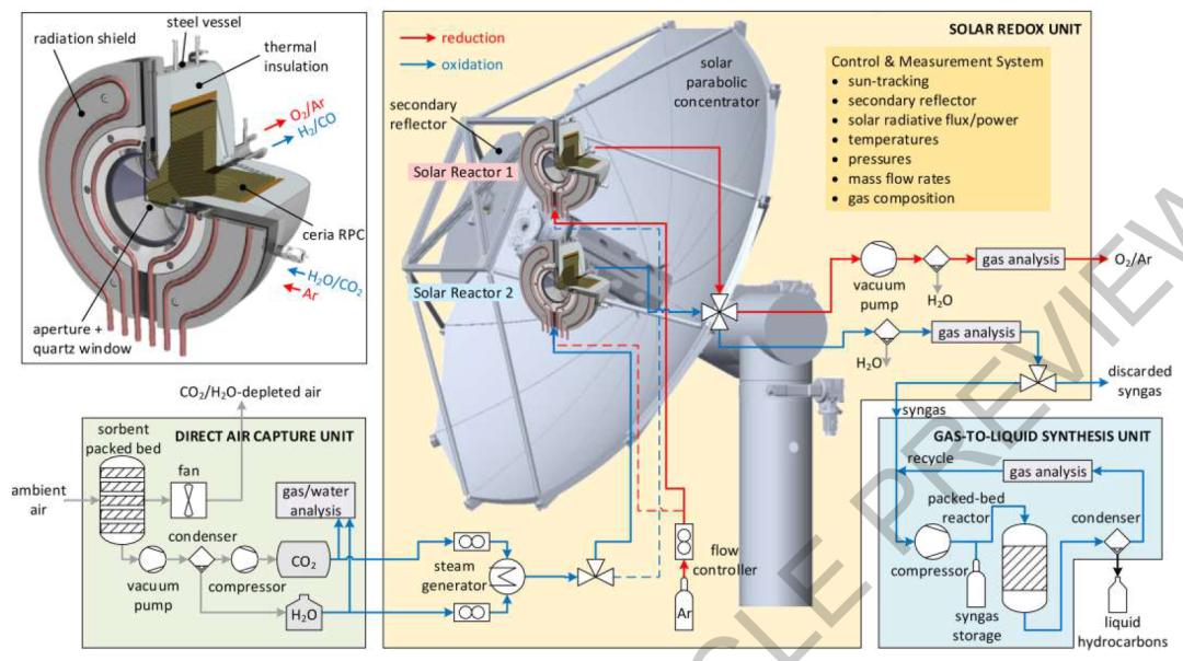 該裝(zhuang)置(zhi)(zhi)由3部分構成:第(di)一是(shi)能(neng)(neng)夠直接(jie)從空氣(qi)(qi)中提(ti)取二氧(yang)化碳和(he)水的捕獲(huo)裝(zhuang)置(zhi)(zhi);第(di)二是(shi)能(neng)(neng)利用太陽能(neng)(neng)將水和(he)二氧(yang)化碳轉換(huan)為合成氣(qi)(qi)的太陽氧(yang)化還原(yuan)裝(zhuang)置(zhi)(zhi);第(di)三是(shi)能(neng)(neng)將合成氣(qi)(qi)轉換(huan)為液態烴或甲醇的氣(qi)(qi)轉液裝(zhuang)置(zhi)(zhi)。