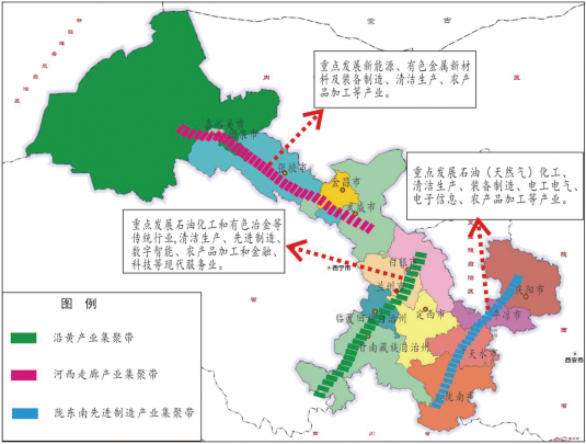 三條產業(ye)集(ji)聚(ju)帶:沿黃河流域(yu)生態產業(ye)集(ji)聚(ju)帶、河西走廊新能(neng)源新材料產業(ye)集(ji)聚(ju)帶和隴東南先進制造(zao)產業(ye)集(ji)聚(ju)帶。