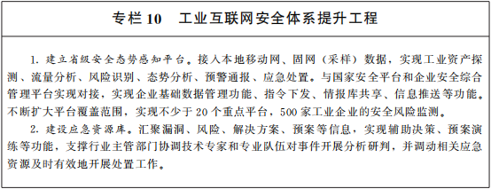 ——安全(quan)(quan)保障(zhang)(zhang)能力(li)進一步(bu)(bu)顯(xian)著提升。建立健全(quan)(quan)安全(quan)(quan)管理制度,工業(ye)(ye)(ye)互(hu)聯網企(qi)業(ye)(ye)(ye)網絡安全(quan)(quan)分類分級管理有(you)效實(shi)施,全(quan)(quan)面壓實(shi)企(qi)業(ye)(ye)(ye)安全(quan)(quan)主體責任,聚焦重點領(ling)域(yu)打造5家“兩(liang)化(hua)”融合(he)貫(guan)標示范企(qi)業(ye)(ye)(ye)和(he)10個(ge)優秀解決方案。初步(bu)(bu)建成本地(di)(di)工業(ye)(ye)(ye)互(hu)聯網安全(quan)(quan)保障(zhang)(zhang)體系,培育形成1—3家具有(you)核(he)心(xin)競爭力(li)的本地(di)(di)信息(xi)安全(quan)(quan)企(qi)業(ye)(ye)(ye),顯(xian)著提升安全(quan)(quan)感(gan)知(zhi)和(he)綜合(he)保障(zhang)(zhang)能力(li)。