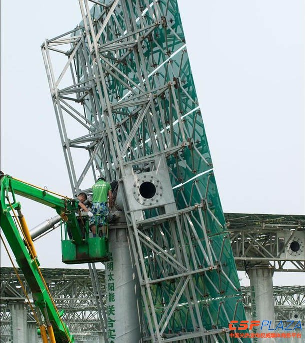 8月6日,中科院(yuan)八達嶺太陽能熱發電實(shi)驗電站的工作(zuo)人員在調試定日鏡(jing)