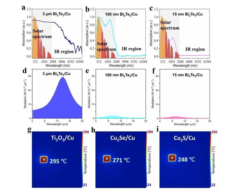 具體來說,該團隊選擇碲化鉍(Bi2Te3)為吸光(guang)(guang)材料,原因(yin)在于它是(shi)典型的窄帶(dai)隙光(guang)(guang)熱材料,能有效吸收太陽(yang)光(guang)(guang)譜能量并轉化為熱能。