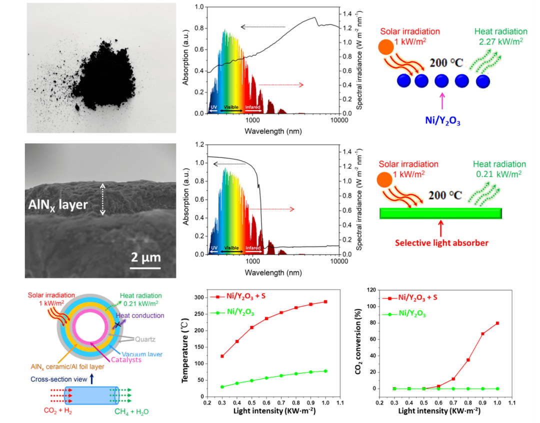 另據悉,當前光熱(re)催(cui)化需(xu)要采用(yong)輔助(zhu)加(jia)熱(re)、或增加(jia)光輻照強度,來提(ti)升催(cui)化劑溫度。但這(zhe)兩種措(cuo)施都會帶來巨大成(cheng)本和(he)能(neng)源消(xiao)耗(hao),導致光熱(re)催(cui)化無法投入應(ying)用(yong)。所(suo)以(yi)在(zai)低密度室(shi)外太陽(yang)光輻照下(xia),去提(ti)升光熱(re)材料的光熱(re)溫度,既(ji)是研究熱(re)點、也是現實(shi)工業需(xu)求。