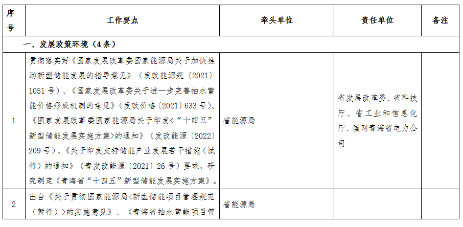 附件:青海省國家儲能發展先行示范區行動方案2022年度工作要點任務清單