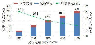 圖10 2030年海西地區(qu)不(bu)同(tong)光熱電站規模(mo)發電量統計(含應(ying)急發電)
