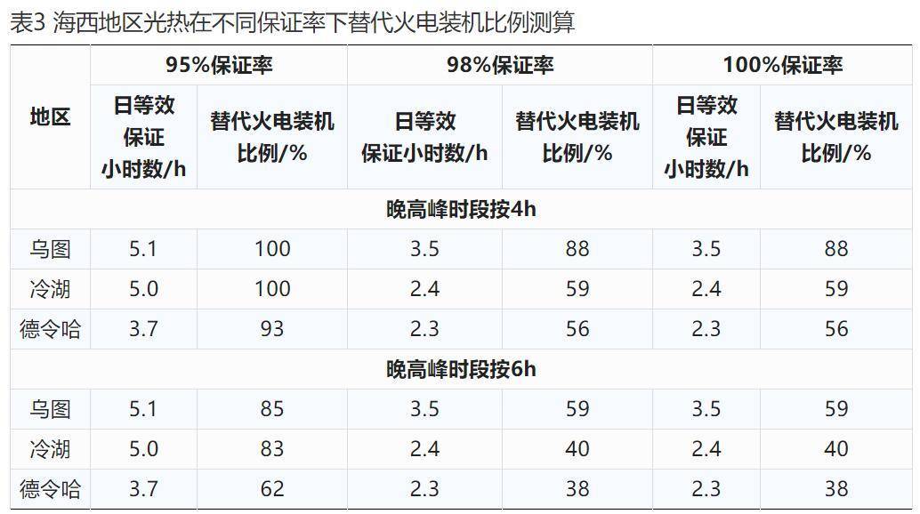 表3 海(hai)西地區(qu)光熱在不同保證率下替代火電(dian)裝機比例測算(suan)