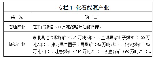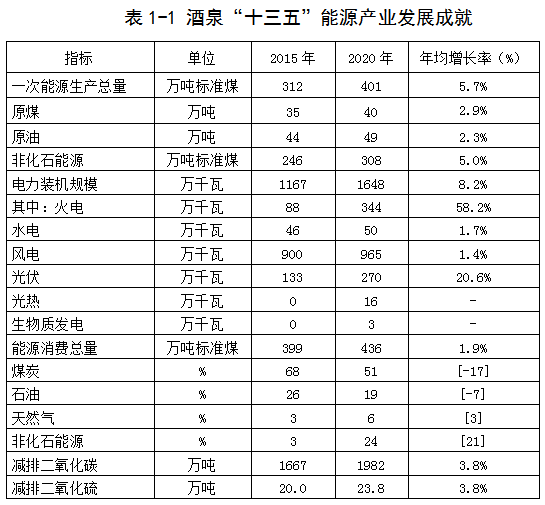 表1-1 酒泉“十三(san)五”能源(yuan)產業發展成就