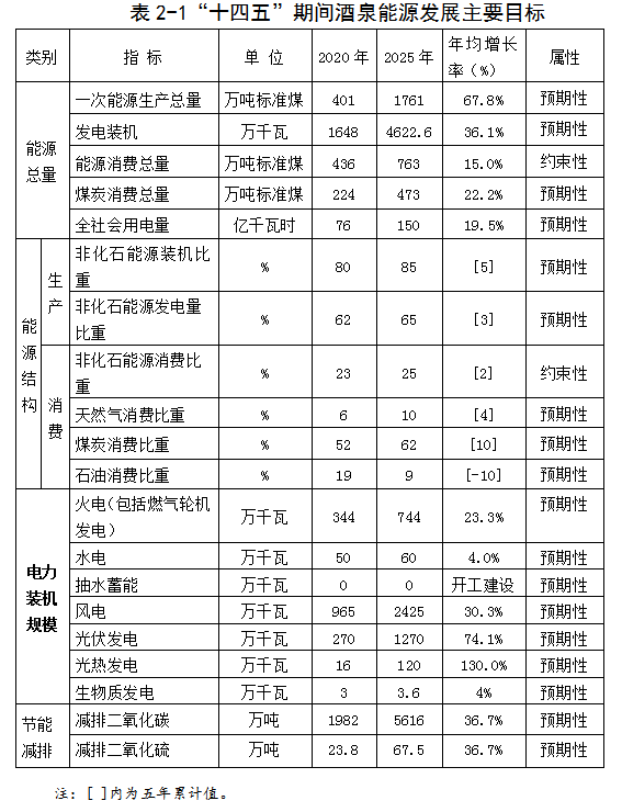 酒(jiu)泉市(shi)“十四五(wu)”能源發展規劃