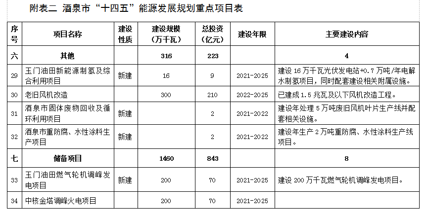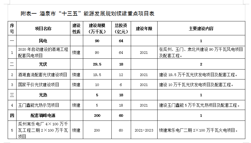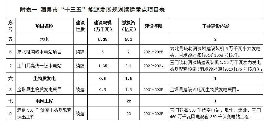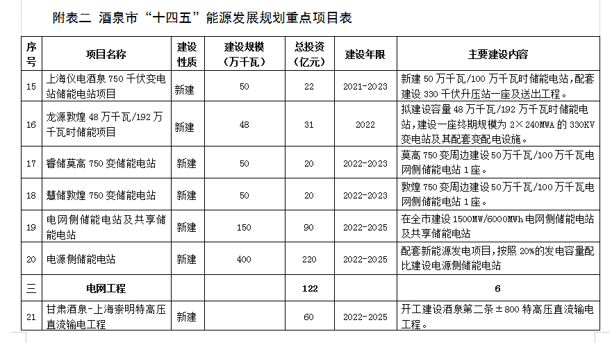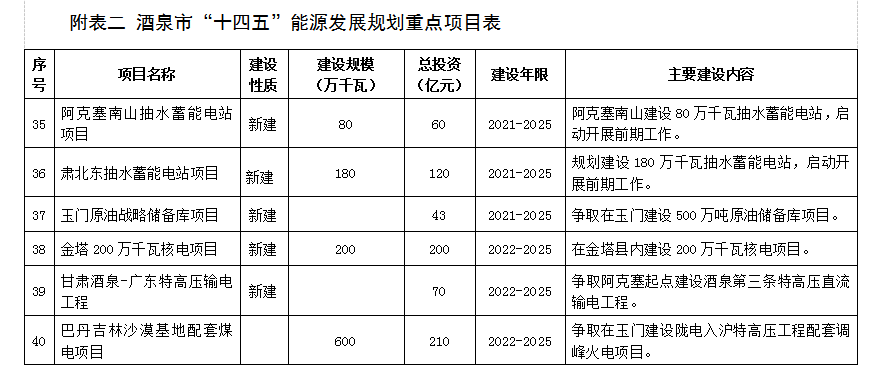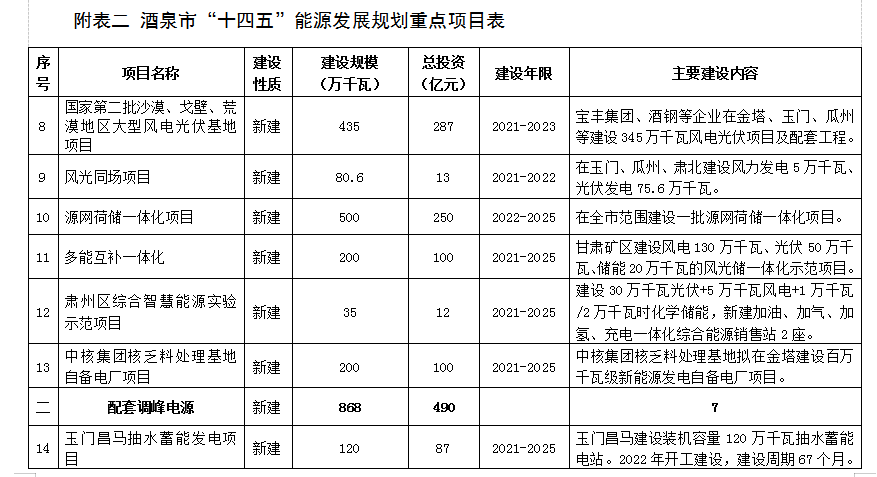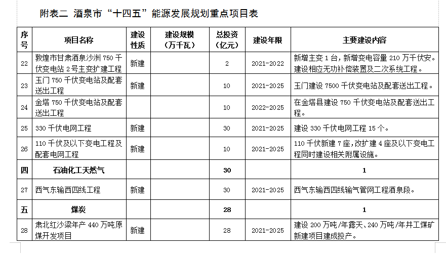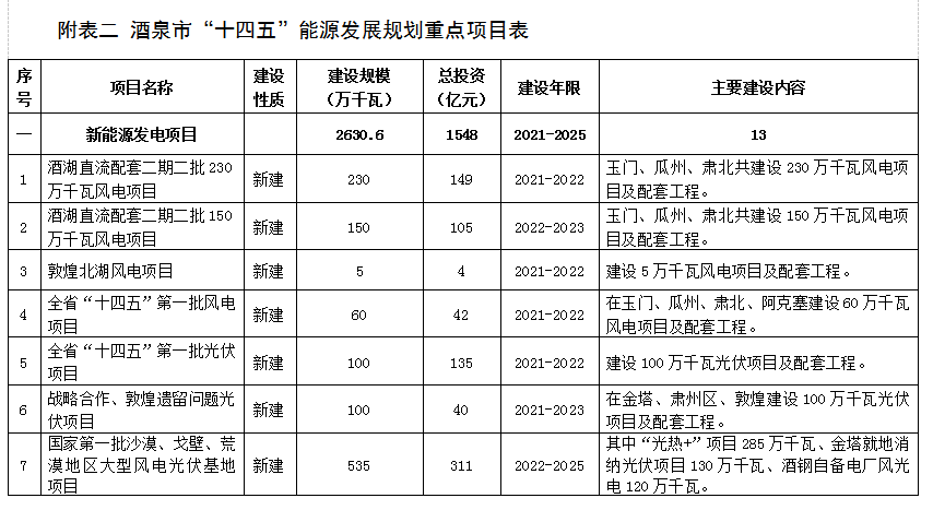 附表二 酒泉市“十四(si)五(wu)”能源發展規劃重點項目(mu)表 (76)