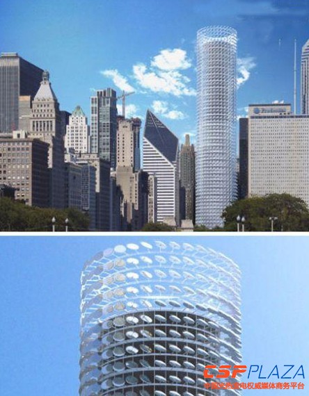 芝加哥至少擁有一座因經濟低迷拖累而尚未竣工的摩天大樓。但是,我們仍然希望,由佐卡·佐拉建筑設計公司(ZokaZolaArchitects)提出的芝加哥太陽能大廈(ChicagoSolarTower)有朝一日成為現實,將一個非常醒目的可持續發展城市設計范例帶到這座“風之城”(芝加哥的別稱)。太陽能大廈外立面的追蹤裝置上有多個圓形太陽能收集器,可全天跟隨太陽的方向旋轉,令固定在追蹤裝置上的太陽能電池板發電量增加40%,甚至太陽能電池板遭受的風壓也能轉換為清潔能源。