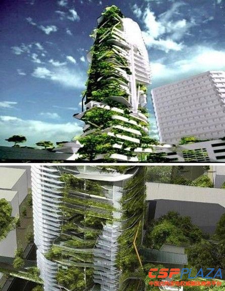 這座表面覆蓋太陽能薄膜的大廈由肯尼思·勞和米歇爾·利姆設計,看上去就像是破土而出的怪物,而非人造建筑,它的外立面極不尋常:不僅近一半的區域以花園和綠地的形式暴露在外,而且還覆蓋著太陽能電池薄膜。這棟建筑的核心是中空圓柱體結構,它可將熱氣從表面輸送至各處,控制所有周圍綠地、商業空間和住宅區的溫度。