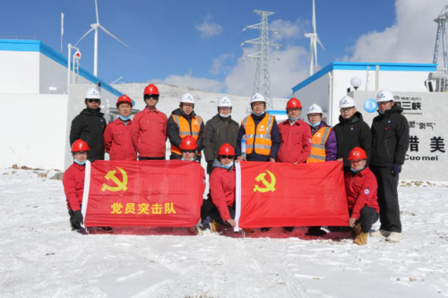 圖:可再生能(neng)源質監(jian)黨員突擊隊在海拔超5000米的西藏(zang)哲古風電(dian)場現場質量監(jian)督
