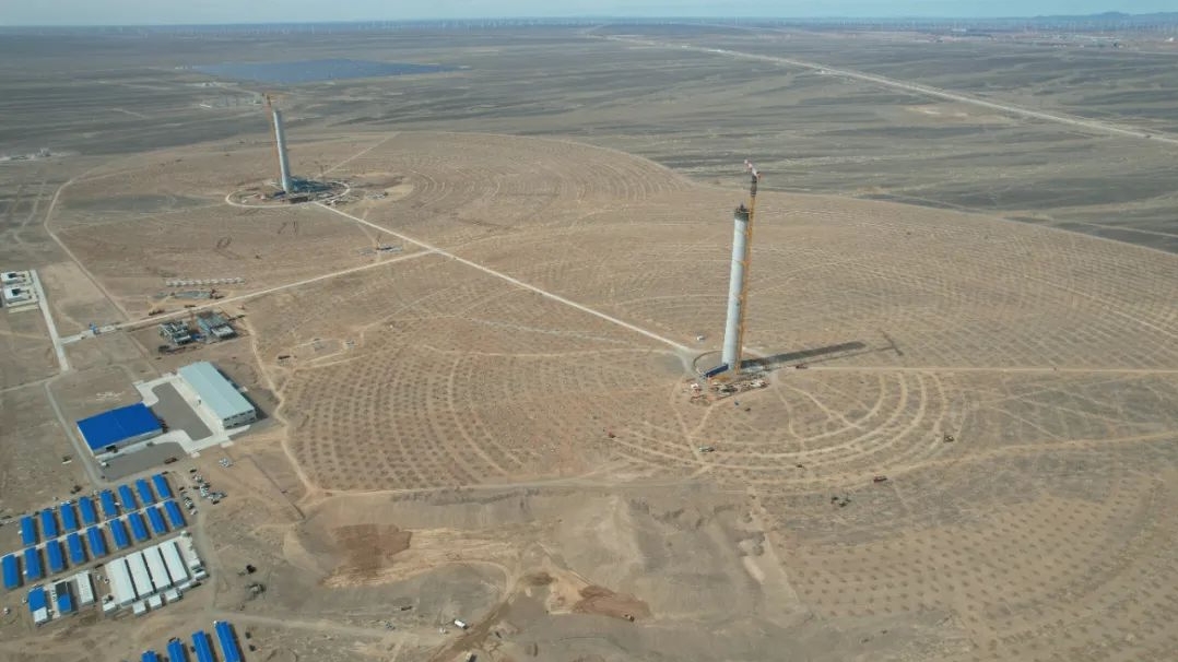 最新動(dong)態:已進(jin)入全(quan)面(mian)建設階段,EPC為中國電(dian)力(li)工(gong)(gong)(gong)程(cheng)顧(gu)問集(ji)團華東電(dian)力(li)設計院(yuan)有限公(gong)司。2023年(nian)9月19日,吸熱(re)(re)塔180米筒壁結(jie)構施工(gong)(gong)(gong)成(cheng)功到(dao)頂。光(guang)熱(re)(re)區樁基施工(gong)(gong)(gong)全(quan)部完畢,光(guang)熱(re)(re)定日鏡安裝(zhuang)4000面(mian)左(zuo)右,計劃今年(nian)年(nian)底完成(cheng)全(quan)部土建工(gong)(gong)(gong)作(zuo)和大(da)部分(fen)安裝(zhuang)工(gong)(gong)(gong)作(zuo),計劃2024年(nian)10月底實現(xian)光(guang)熱(re)(re)和光(guang)伏(fu)全(quan)容量(liang)并網(wang)發電(dian)。