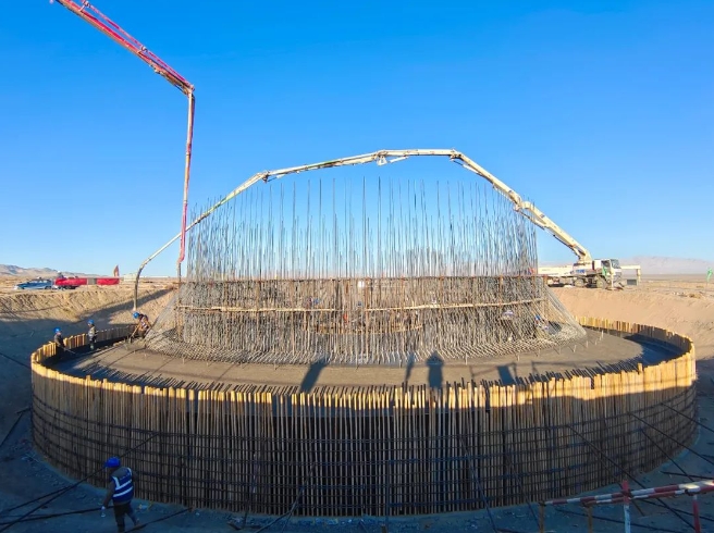 最新動態:正在建設,光(guang)熱EPC為中(zhong)國水利水電(dian)第一工(gong)程(cheng)局有限公司(si)(si)聯(lian)合(he)體(ti),聯(lian)合(he)體(ti)成員:中(zhong)國電(dian)建集團(tuan)江西省(sheng)電(dian)力設計院有限公司(si)(si)、山(shan)東電(dian)力建設第三工(gong)程(cheng)有限公司(si)(si);蒸汽(qi)發(fa)生器、汽(qi)輪發(fa)電(dian)機組、吸熱器等關鍵裝(zhuang)備已完(wan)成采購。2023年10月(yue)8日,光(guang)塔基礎混凝土(tu)順利開始澆筑;2023年10月(yue)10日,光(guang)熱工(gong)程(cheng)廠前區第一棟(dong)主體(ti)結構建筑順利封頂。