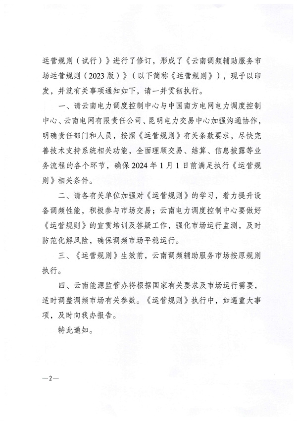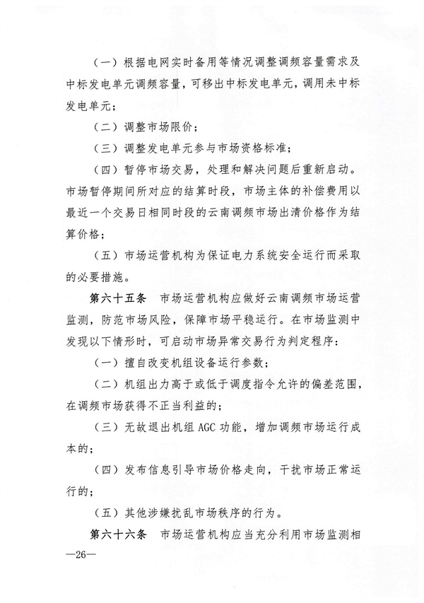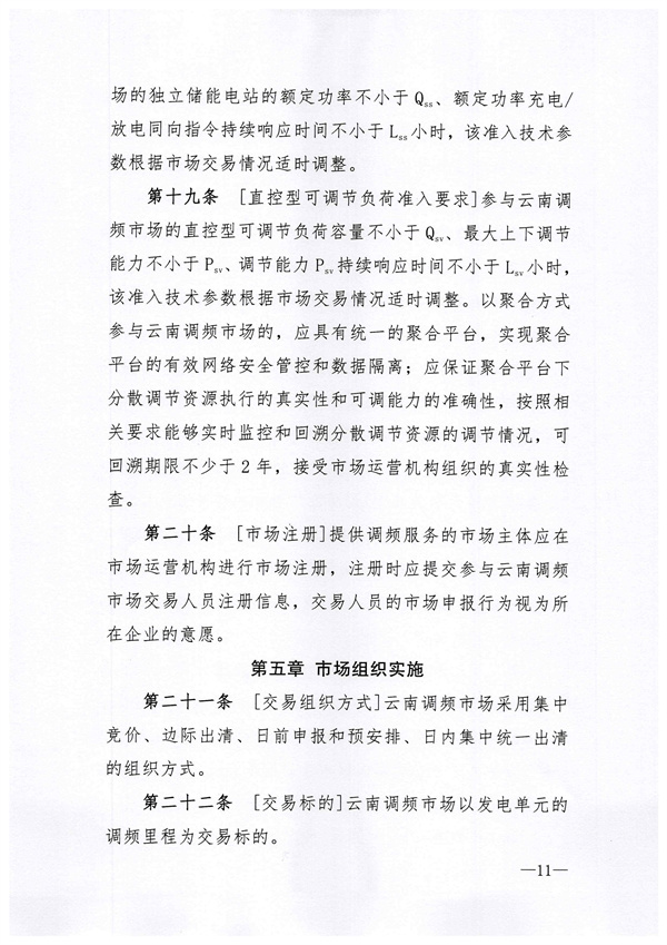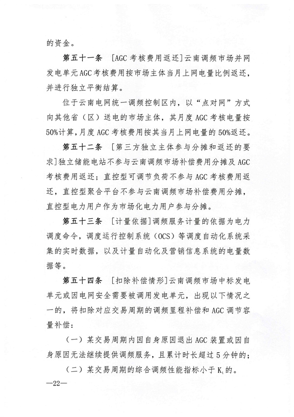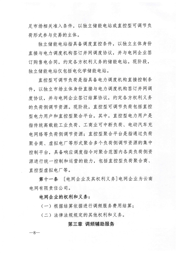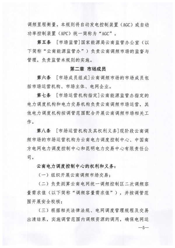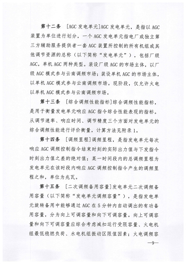 12月13日(ri),國家能源局(ju)云南監管(guan)辦公室印發(fa)《云南調頻輔助(zhu)服務市場(chang)(chang)運營規(gui)則(ze)(2023版)》。其(qi)中提(ti)到,位于云南電(dian)(dian)網統一調頻控制區范圍(wei)內的(de)發(fa)電(dian)(dian)側市場(chang)(chang)主體,包(bao)括省(sheng)級及(ji)以(yi)上(shang)電(dian)(dian)力調度機構直接調度的(de)并網發(fa)電(dian)(dian)廠、地市級電(dian)(dian)力調度機構調度的(de)容量為10兆瓦(wa)及(ji)以(yi)上(shang)火(huo)電(dian)(dian)、水電(dian)(dian)、風(feng)電(dian)(dian)、光(guang)伏發(fa)電(dian)(dian)、光(guang)熱發(fa)電(dian)(dian)、自(zi)備(bei)電(dian)(dian)廠等(deng)。