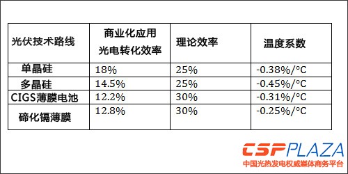 對于光伏而言,溫度過高將直接影響光伏電池板的輸出功率。下表是光伏系統廠商First Solar提供的各種光伏發電系統的溫度系數,溫度系數表征了溫度每升高1℃對系統發電輸出功率的影響。
