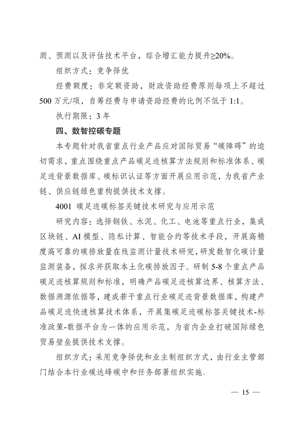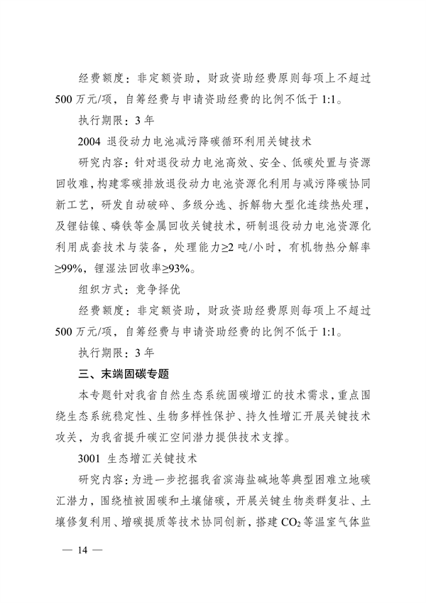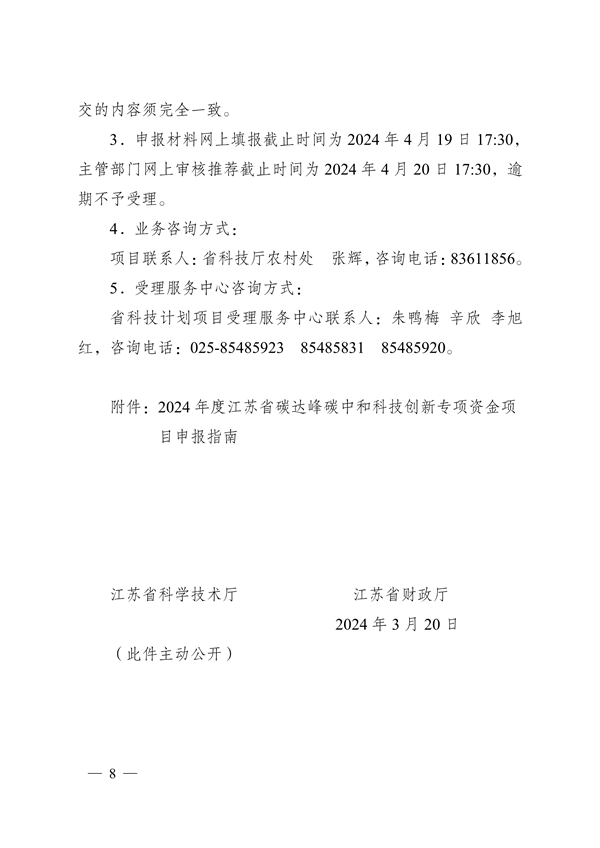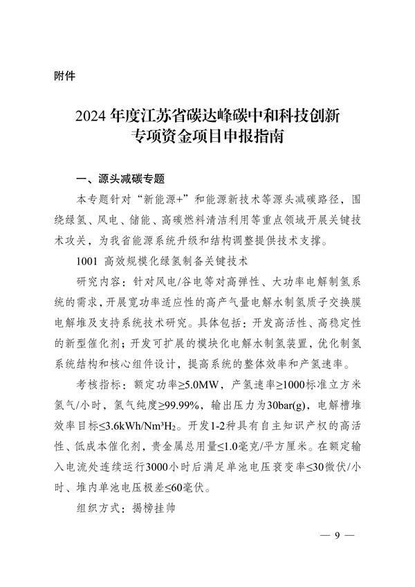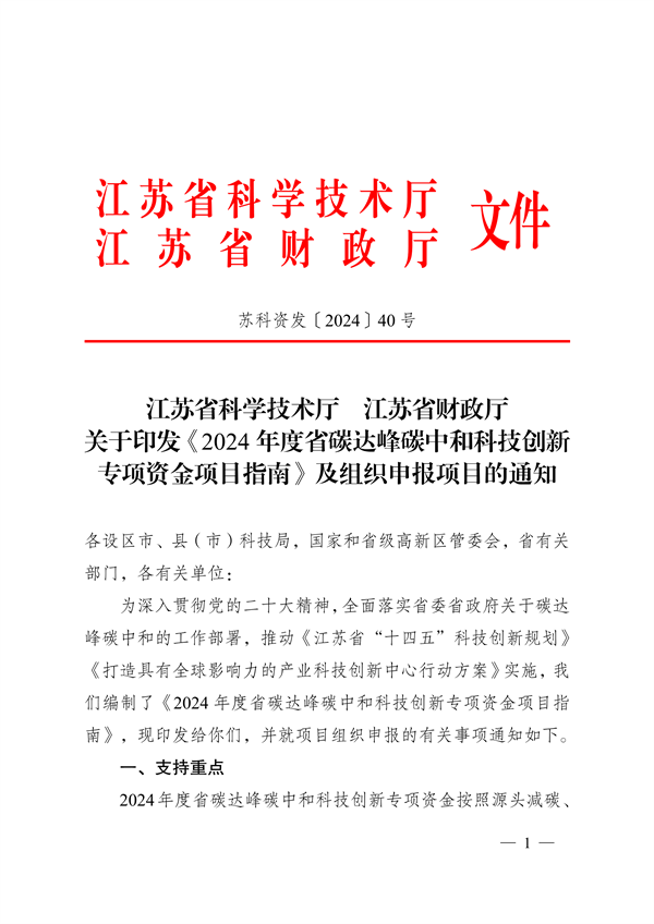 3月22日(ri),江蘇(su)省科學技術廳、江蘇(su)省財政廳印發《2024年度省碳(tan)達峰碳(tan)中和科技創新專項資(zi)金(jin)項目指南》及組織(zhi)申報項目的(de)通(tong)知(zhi)(以(yi)下簡稱“通(tong)知(zhi)”)。