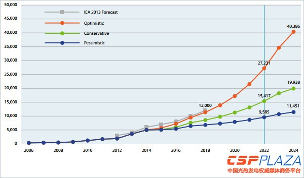 圖:光熱(re)發電裝機預測(ce)(來源(yuan):CSPToday)