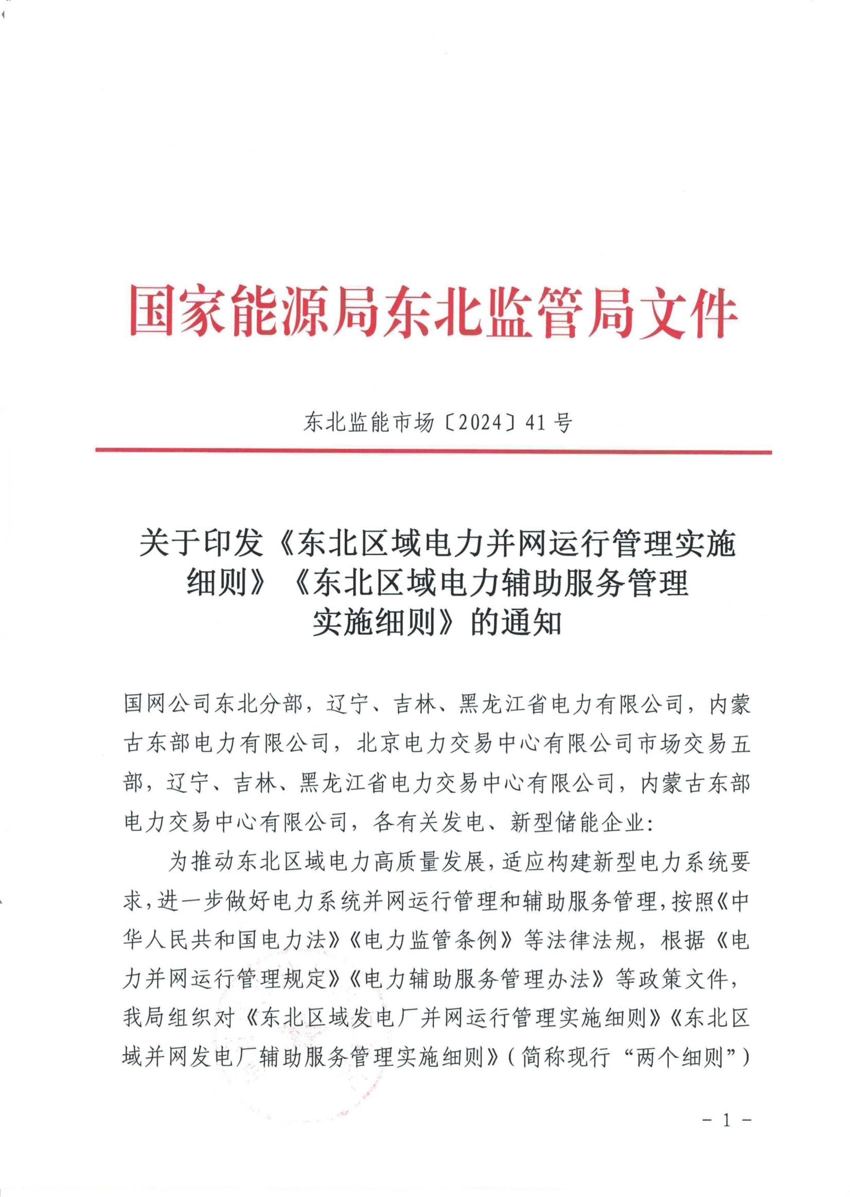 日前(qian),東北(bei)能源監管(guan)局印發《東北(bei)區(qu)域電(dian)力并(bing)(bing)網運行管(guan)理實施細(xi)則(ze)》《東北(bei)區(qu)域電(dian)力輔(fu)助(zhu)服(fu)務管(guan)理實施細(xi)則(ze)》。文件指出(chu),新版“兩個細(xi)則(ze)”依據國家法(fa)律(lv)法(fa)規及政策文件,增加并(bing)(bing)網主體類型、優化(hua)并(bing)(bing)網管(guan)理考核機制、豐富(fu)電(dian)力輔(fu)助(zhu)服(fu)務品種、健(jian)全(quan)信息(xi)披露報送和監督(du)管(guan)理工作機制,為進一(yi)步做好電(dian)力系統并(bing)(bing)網運行和輔(fu)助(zhu)服(fu)務管(guan)理,保(bao)障(zhang)東北(bei)三省一(yi)區(qu)電(dian)力系統安全(quan)、優質、經濟運行及電(dian)力市場有(you)序運營奠定堅實基礎。