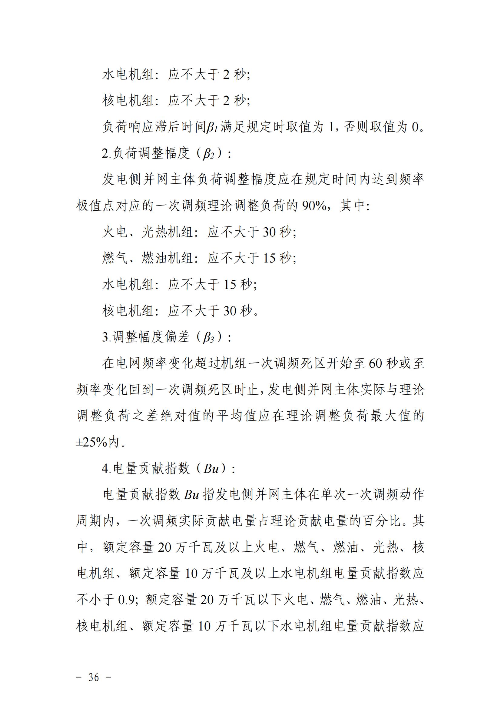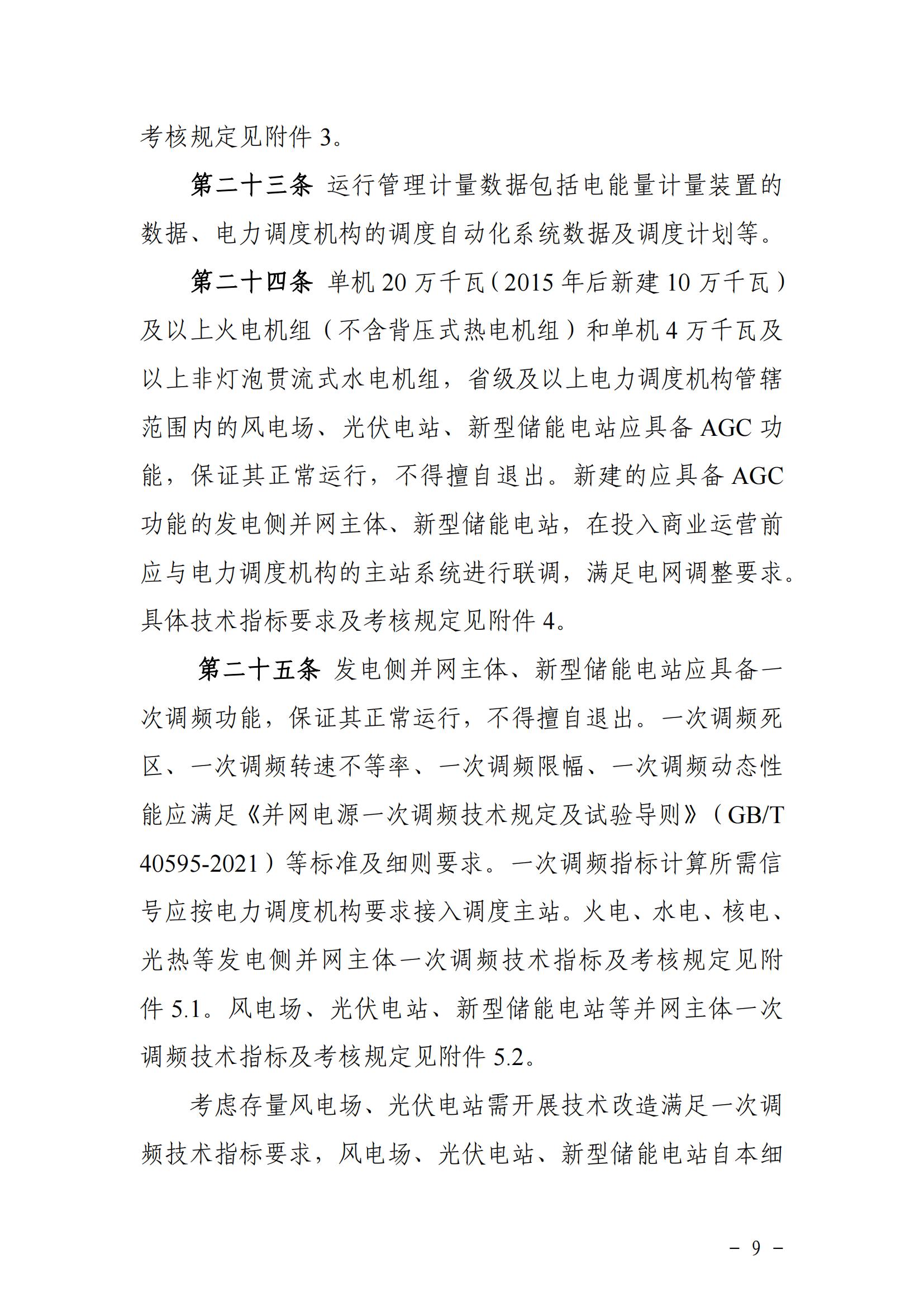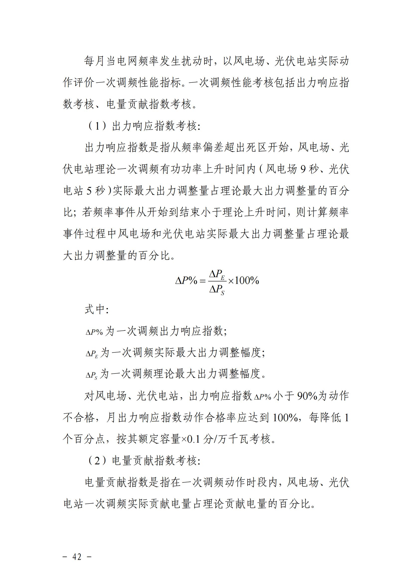 發電(dian)側并(bing)網(wang)主(zhu)體、新型儲能(neng)電(dian)站(zhan)(zhan)應具備一(yi)(yi)(yi)(yi)次(ci)(ci)調頻(pin)(pin)(pin)(pin)功能(neng),保(bao)證(zheng)其(qi)正(zheng)常運行,不得擅自退出。一(yi)(yi)(yi)(yi)次(ci)(ci)調頻(pin)(pin)(pin)(pin)死區、一(yi)(yi)(yi)(yi)次(ci)(ci)調頻(pin)(pin)(pin)(pin)轉速(su)不等(deng)(deng)率、一(yi)(yi)(yi)(yi)次(ci)(ci)調頻(pin)(pin)(pin)(pin)限幅、一(yi)(yi)(yi)(yi)次(ci)(ci)調頻(pin)(pin)(pin)(pin)動態性能(neng)應滿足《并(bing)網(wang)電(dian)源一(yi)(yi)(yi)(yi)次(ci)(ci)調頻(pin)(pin)(pin)(pin)技術(shu)規定及試驗導則(ze)》(GB/T40595-2021)等(deng)(deng)標準及細(xi)則(ze)要求(qiu)。一(yi)(yi)(yi)(yi)次(ci)(ci)調頻(pin)(pin)(pin)(pin)指標計算(suan)所需信號應按電(dian)力(li)調度(du)機構要求(qiu)接入調度(du)主(zhu)站(zhan)(zhan)。火(huo)電(dian)、水(shui)電(dian)、核電(dian)、光熱等(deng)(deng)發電(dian)側并(bing)網(wang)主(zhu)體一(yi)(yi)(yi)(yi)次(ci)(ci)調頻(pin)(pin)(pin)(pin)技術(shu)指標及考核規定見附(fu)件5.1。風(feng)電(dian)場(chang)、光伏電(dian)站(zhan)(zhan)、新型儲能(neng)電(dian)站(zhan)(zhan)等(deng)(deng)并(bing)網(wang)主(zhu)體一(yi)(yi)(yi)(yi)次(ci)(ci)調頻(pin)(pin)(pin)(pin)技術(shu)指標及考核規定見附(fu)件5.2。