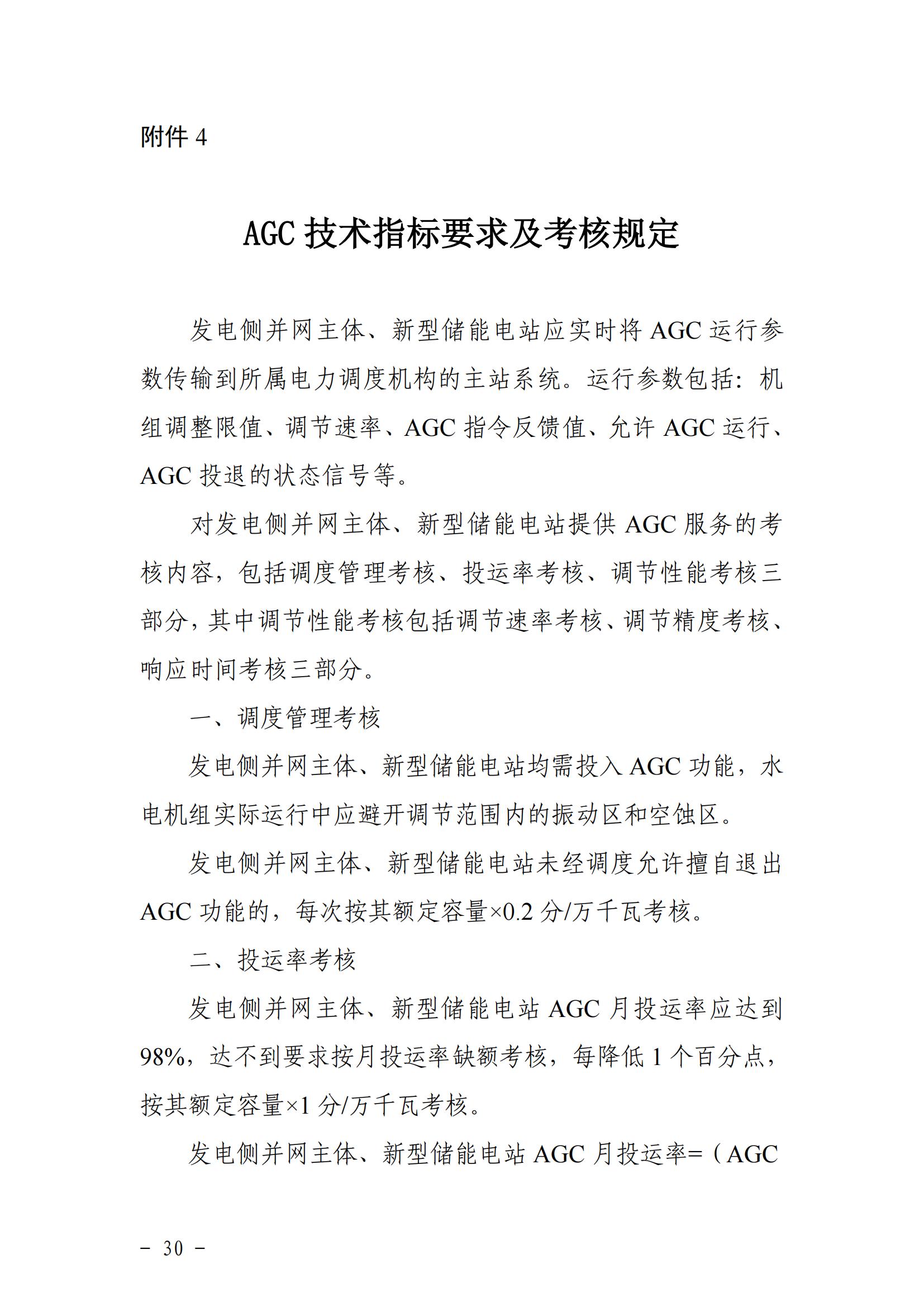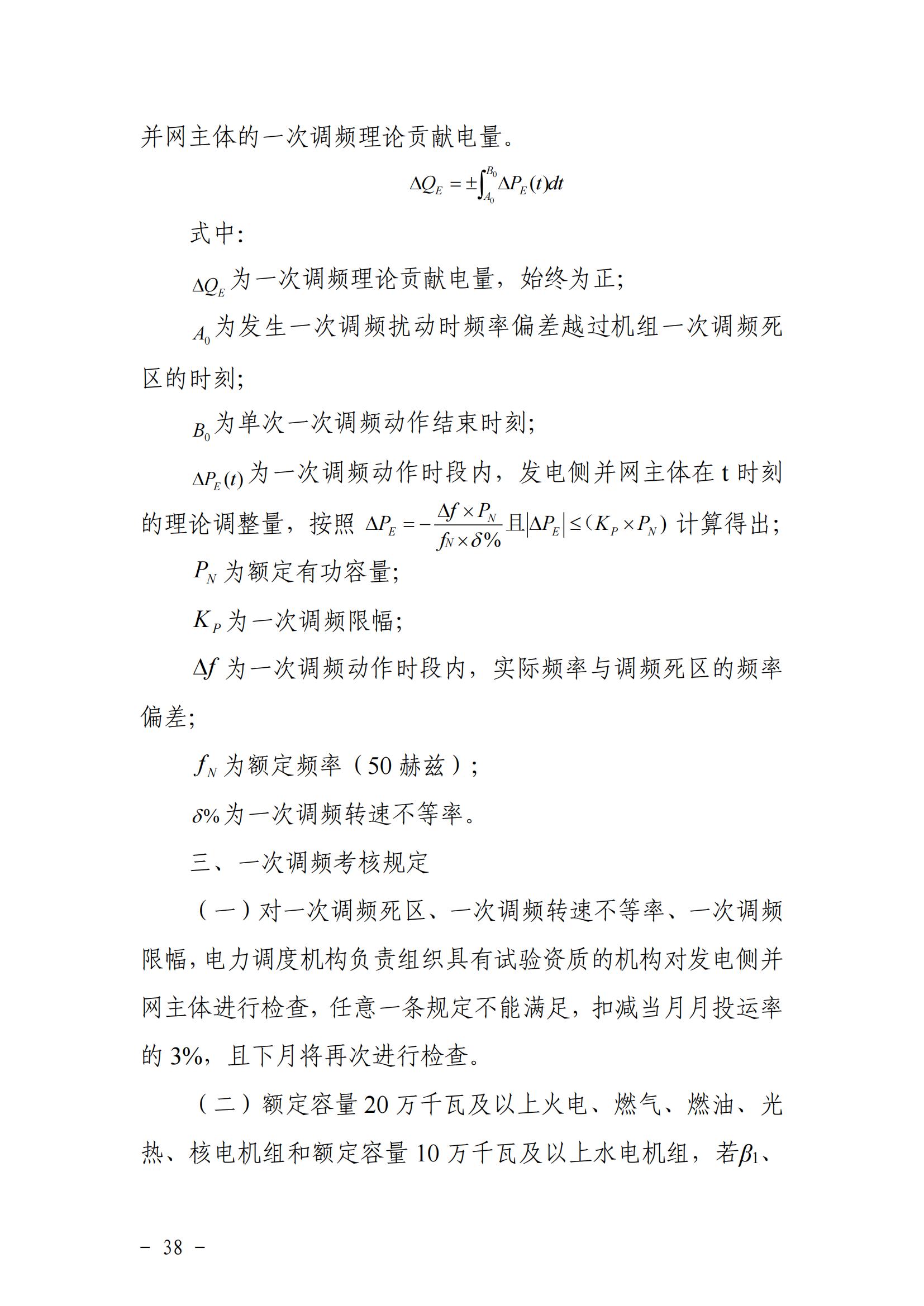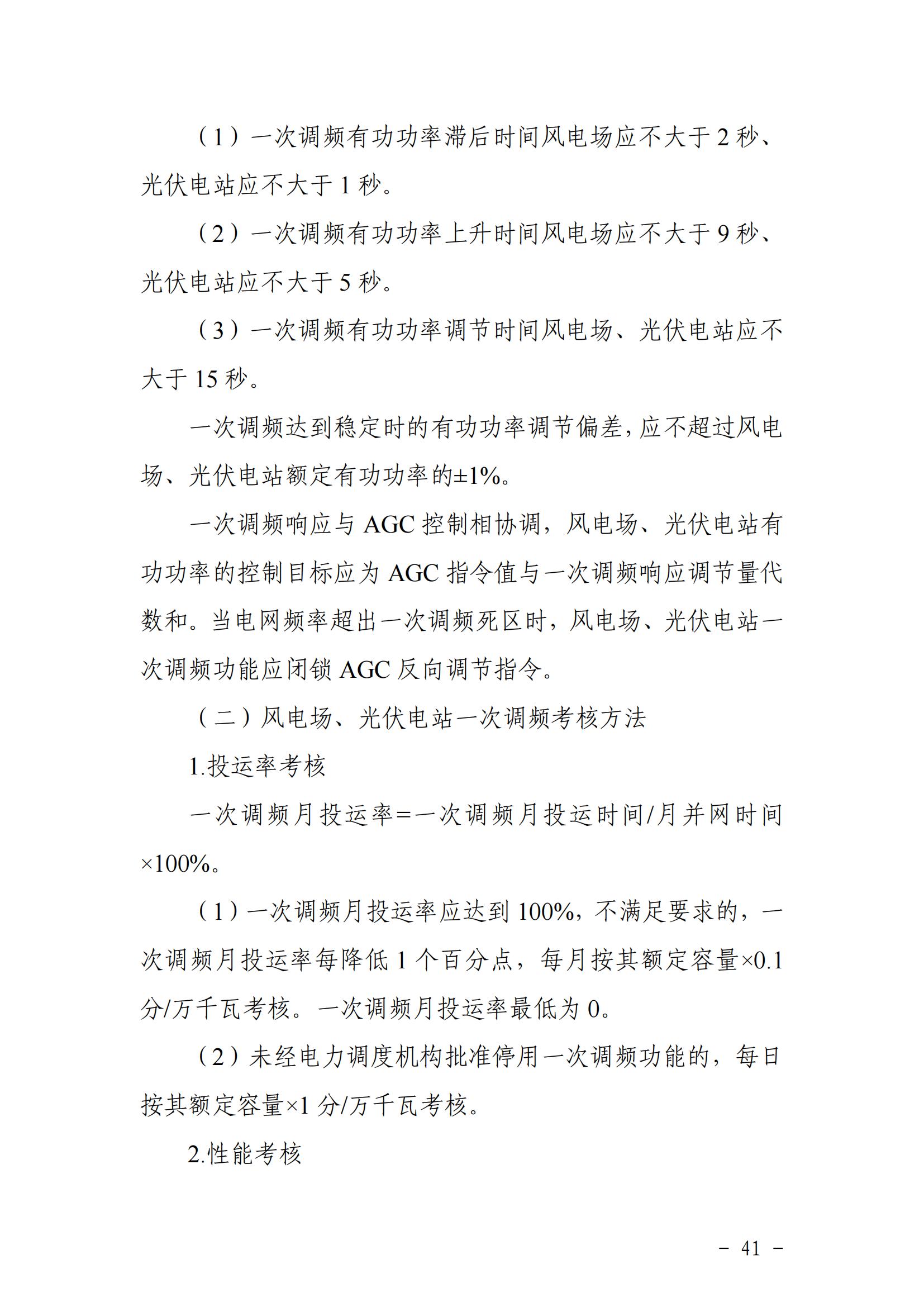 發電(dian)側并(bing)網(wang)主(zhu)體、新型儲能(neng)電(dian)站(zhan)(zhan)應具備一(yi)(yi)(yi)(yi)次(ci)(ci)調頻(pin)(pin)(pin)(pin)功能(neng),保(bao)證(zheng)其(qi)正(zheng)常運行,不得擅自退出。一(yi)(yi)(yi)(yi)次(ci)(ci)調頻(pin)(pin)(pin)(pin)死區、一(yi)(yi)(yi)(yi)次(ci)(ci)調頻(pin)(pin)(pin)(pin)轉速(su)不等(deng)(deng)率、一(yi)(yi)(yi)(yi)次(ci)(ci)調頻(pin)(pin)(pin)(pin)限幅、一(yi)(yi)(yi)(yi)次(ci)(ci)調頻(pin)(pin)(pin)(pin)動態性能(neng)應滿足《并(bing)網(wang)電(dian)源一(yi)(yi)(yi)(yi)次(ci)(ci)調頻(pin)(pin)(pin)(pin)技術(shu)規定及試驗導則(ze)》(GB/T40595-2021)等(deng)(deng)標準及細(xi)則(ze)要求(qiu)。一(yi)(yi)(yi)(yi)次(ci)(ci)調頻(pin)(pin)(pin)(pin)指標計算(suan)所需信號應按電(dian)力(li)調度(du)機構要求(qiu)接入調度(du)主(zhu)站(zhan)(zhan)。火(huo)電(dian)、水(shui)電(dian)、核電(dian)、光熱等(deng)(deng)發電(dian)側并(bing)網(wang)主(zhu)體一(yi)(yi)(yi)(yi)次(ci)(ci)調頻(pin)(pin)(pin)(pin)技術(shu)指標及考核規定見附(fu)件5.1。風(feng)電(dian)場(chang)、光伏電(dian)站(zhan)(zhan)、新型儲能(neng)電(dian)站(zhan)(zhan)等(deng)(deng)并(bing)網(wang)主(zhu)體一(yi)(yi)(yi)(yi)次(ci)(ci)調頻(pin)(pin)(pin)(pin)技術(shu)指標及考核規定見附(fu)件5.2。