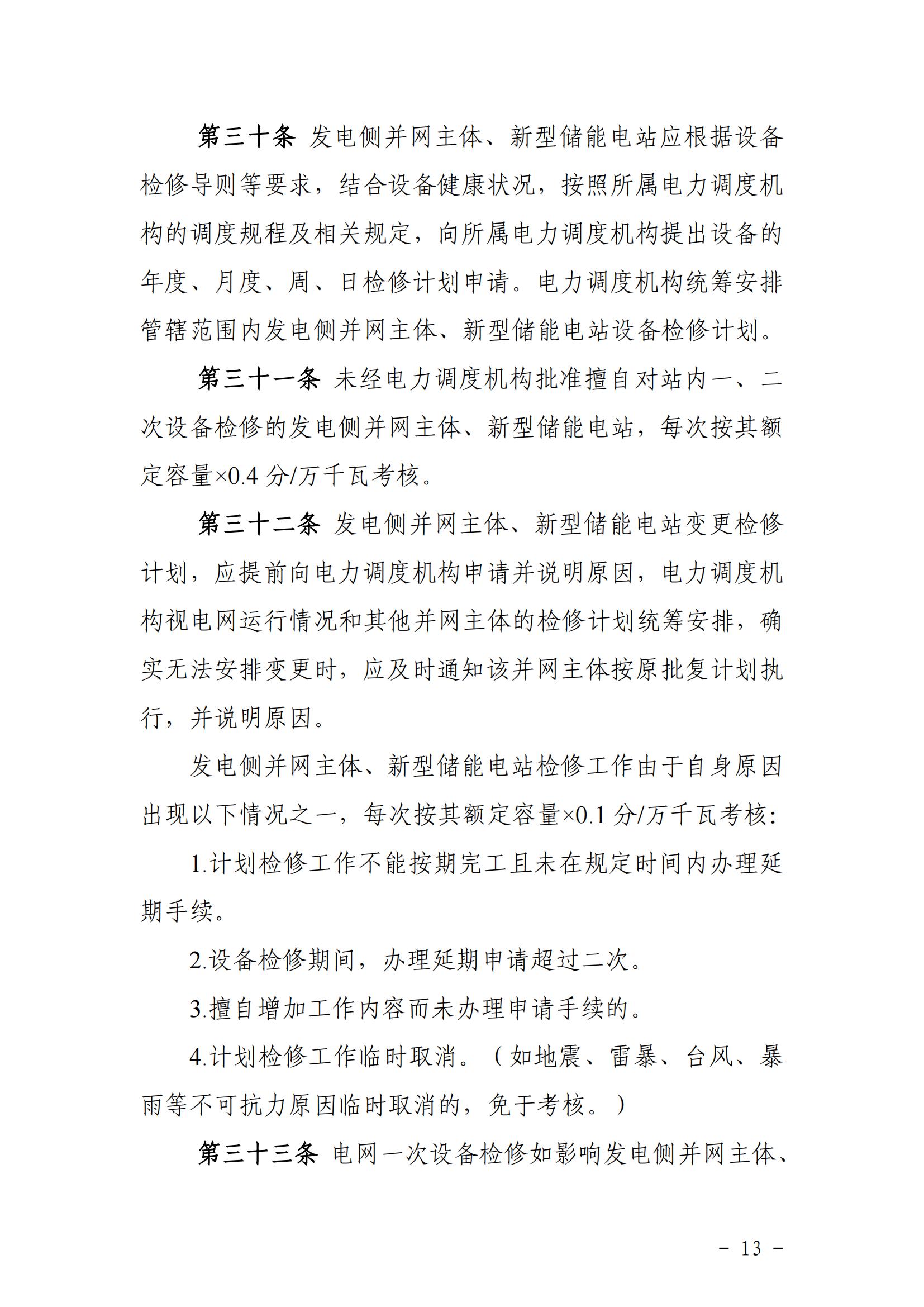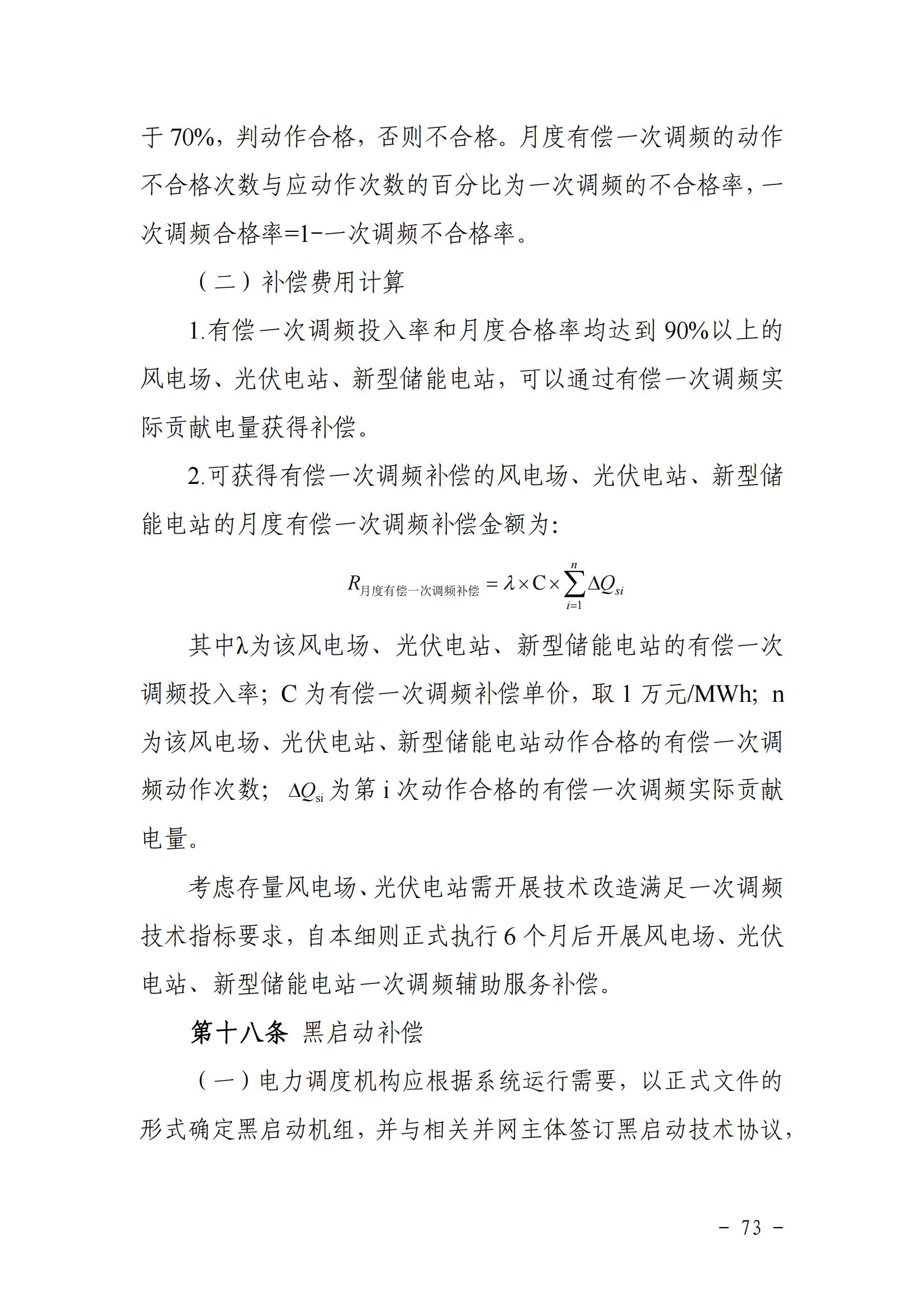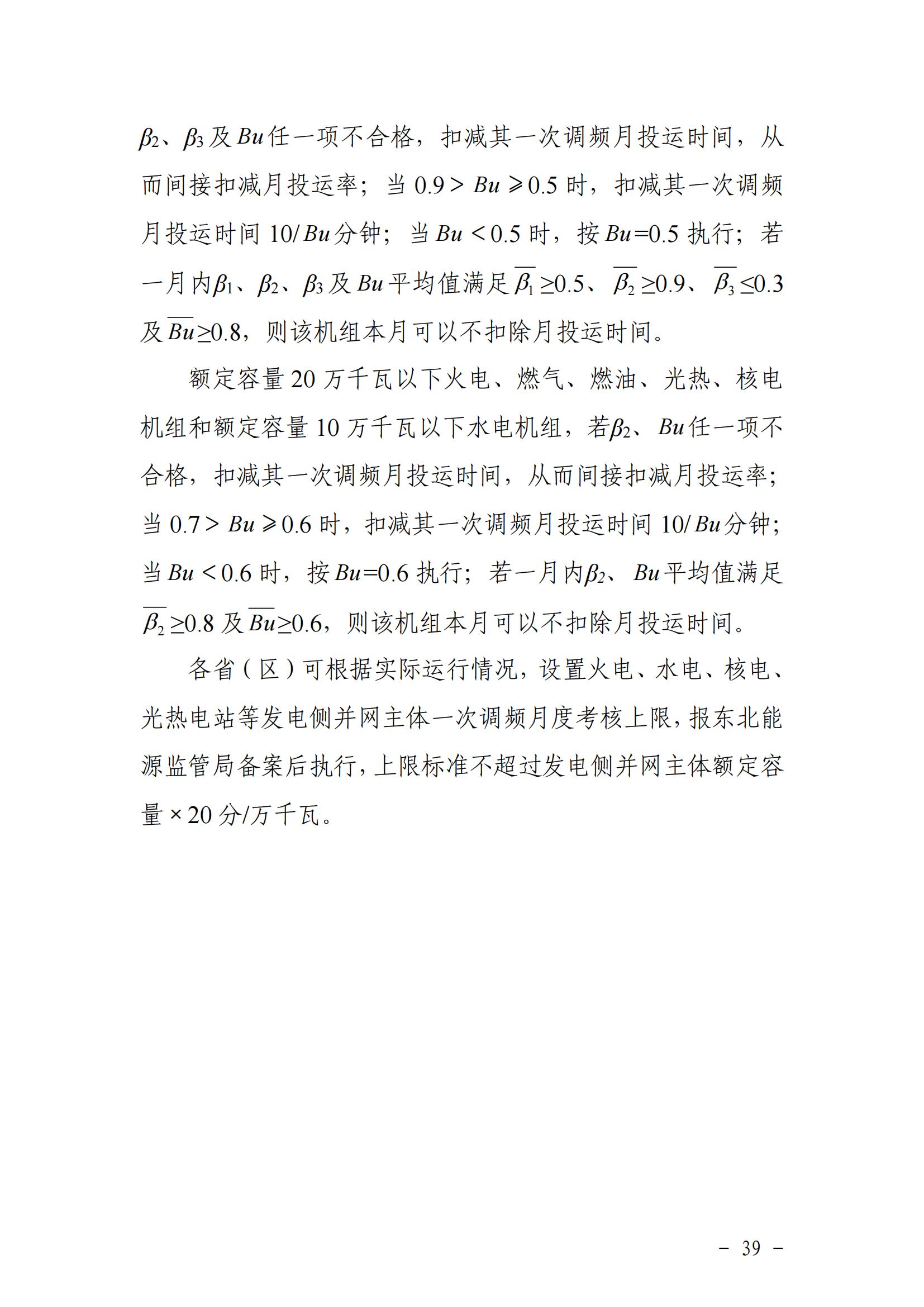 此外(wai),火電、水電、核電、光熱(re)電站等發電側并網主體(ti)一次調頻月(yue)投(tou)運(yun)率(lv)應達到(dao)100%,達不到(dao)要求按月(yue)投(tou)運(yun)率(lv)缺額考(kao)核,每(mei)降低1個百分點,每(mei)月(yue)按其額定(ding)容量×0.3分/萬千瓦(wa)考(kao)核。