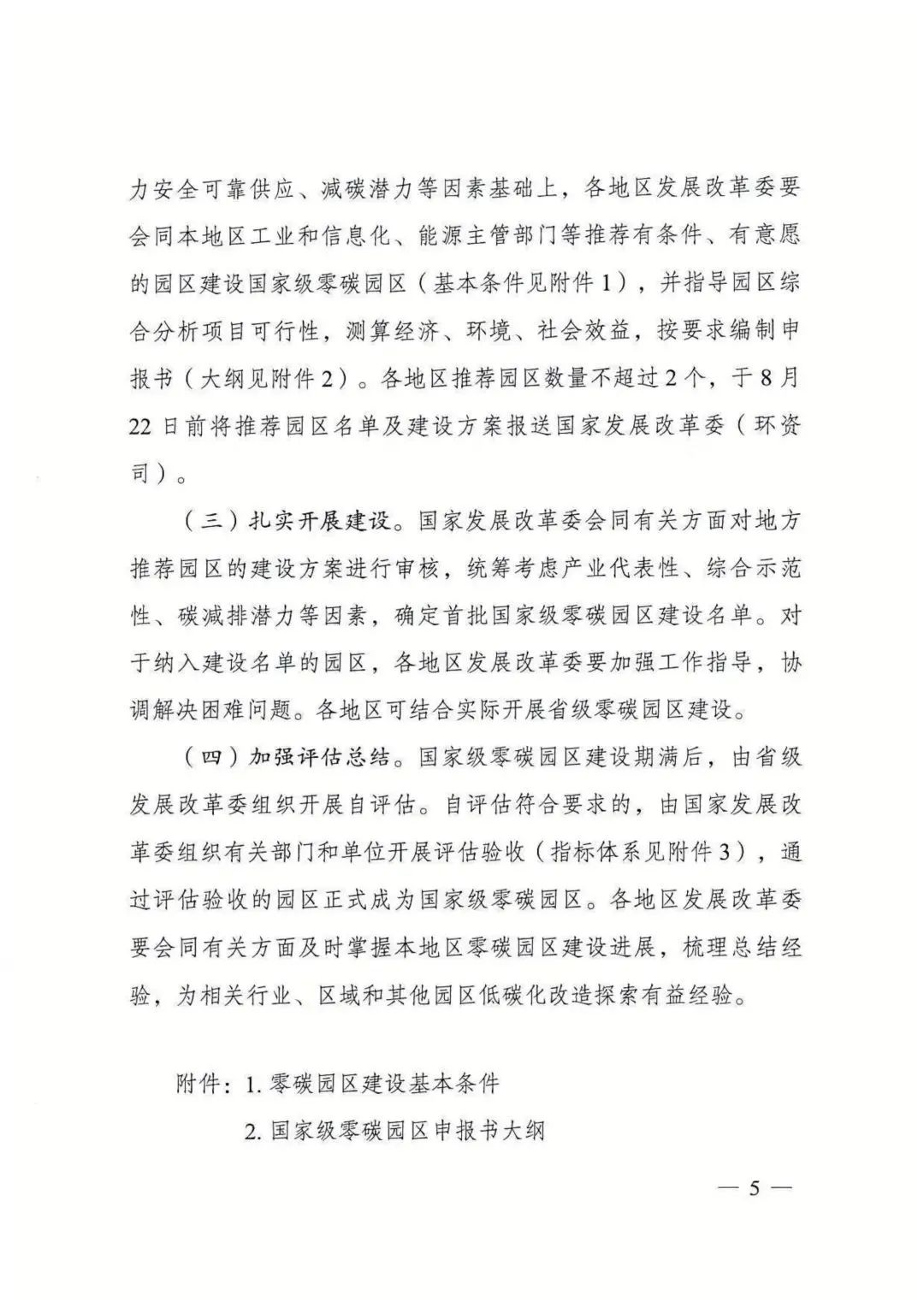 7月1日,國家發展改革(ge)委、工(gong)業和信(xin)息化(hua)部、國家能源局聯合印(yin)發《關(guan)于開展零(ling)碳(tan)園(yuan)(yuan)區建設的通知》》(以下簡稱《通知》),開啟(qi)國家級零(ling)碳(tan)園(yuan)(yuan)區申報。