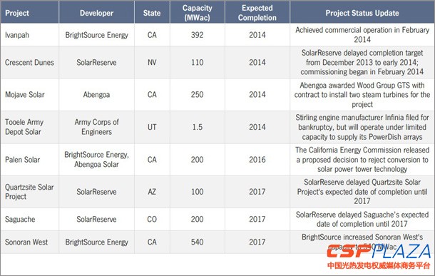 圖:美國(guo)在建(jian)和擬建(jian)的幾大(da)光熱發電項目(部分)