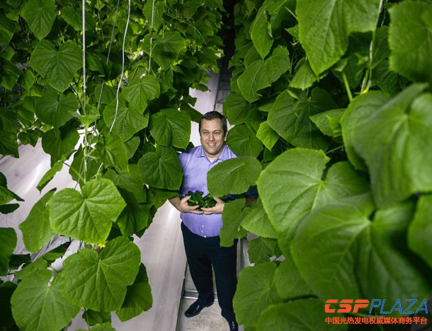 圖:Sahara Forest CEO在(zai)溫室內采(cai)摘黃瓜