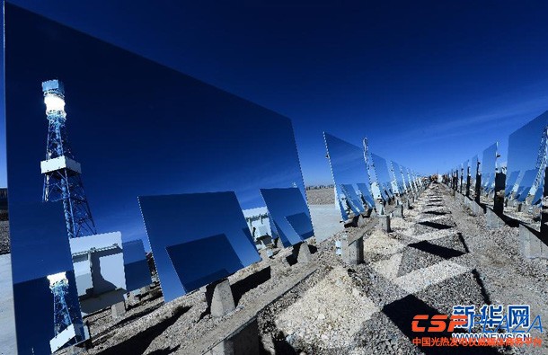 3月16日,這(zhe)是德令哈50兆瓦塔式太陽能光(guang)熱發電(dian)站一(yi)期10兆瓦發電(dian)站一(yi)角