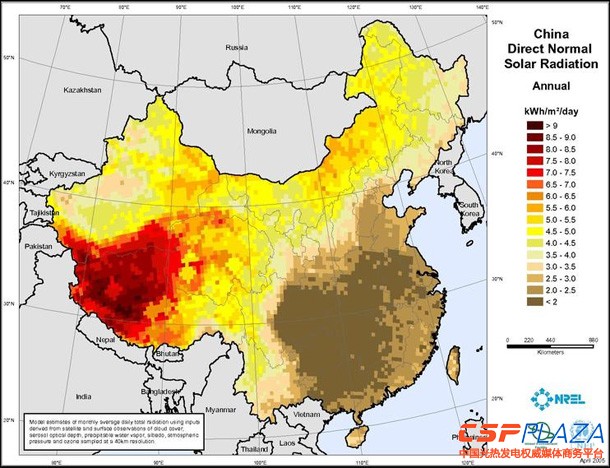 圖:NREL給出(chu)的中國(guo)DNI資源地圖