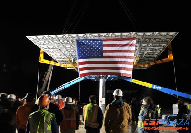 CSPPLAZA光熱發電網訊:SolarReserve公司今日宣布,在建的新月沙丘(Crescent Dunes)塔式太陽能熱發電站于當地時間今晨3點完成了最后一套定日鏡的安裝工作,至此,該電站17170套定日鏡全部完成安裝。
