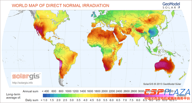 圖(tu):全球DNI輻照(zhao)圖(tu)