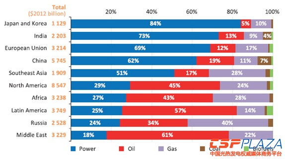 中東大部分的能源投資進入了石油領域,而天然氣主導了俄羅斯的投資。一些缺乏自生資源的國家(如印度)則關注電力行業的投資。這些國家往往是石油和天然氣凈進口國家,嚴重依賴資源富有國家。