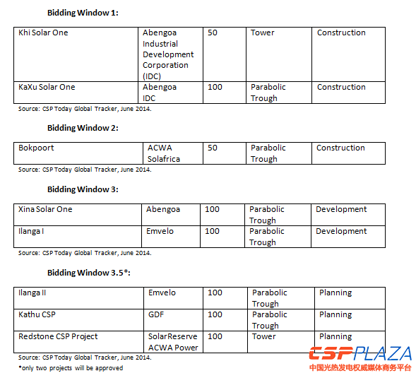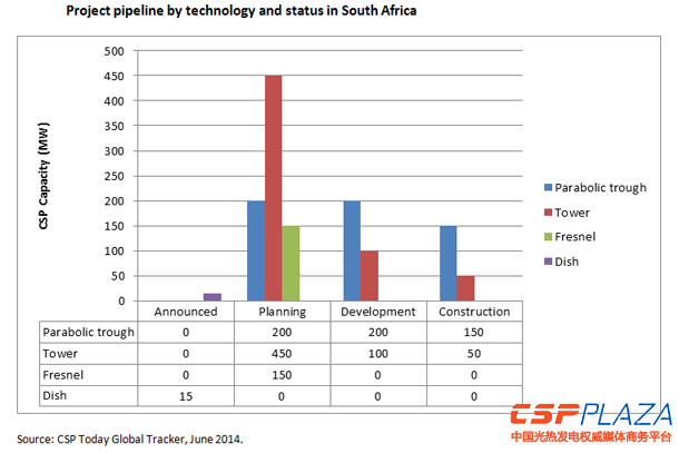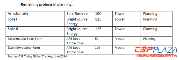 而在南非現已公布的REIPPPP計劃之外,還有一些項目正在規劃中,在這些項目中,塔式電站是主流代表,菲涅爾電站也占有一定容量。雖然南非REIPPPP第四階段招標已經確定將無光熱發電項目,當地一些專家仍樂觀預測到2015年的3月到5月的第四階段B輪招標應該會有光熱發電項目的份額。