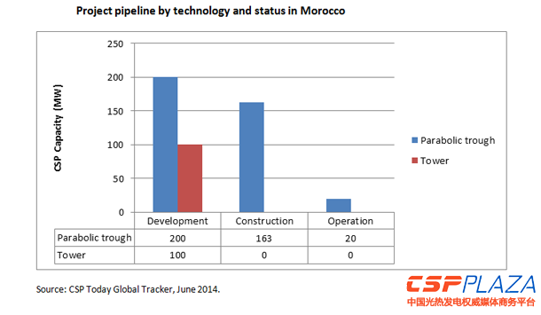 摩洛哥目前在前期開發中的僅一個塔式電站,其余四個均為槽式電站。